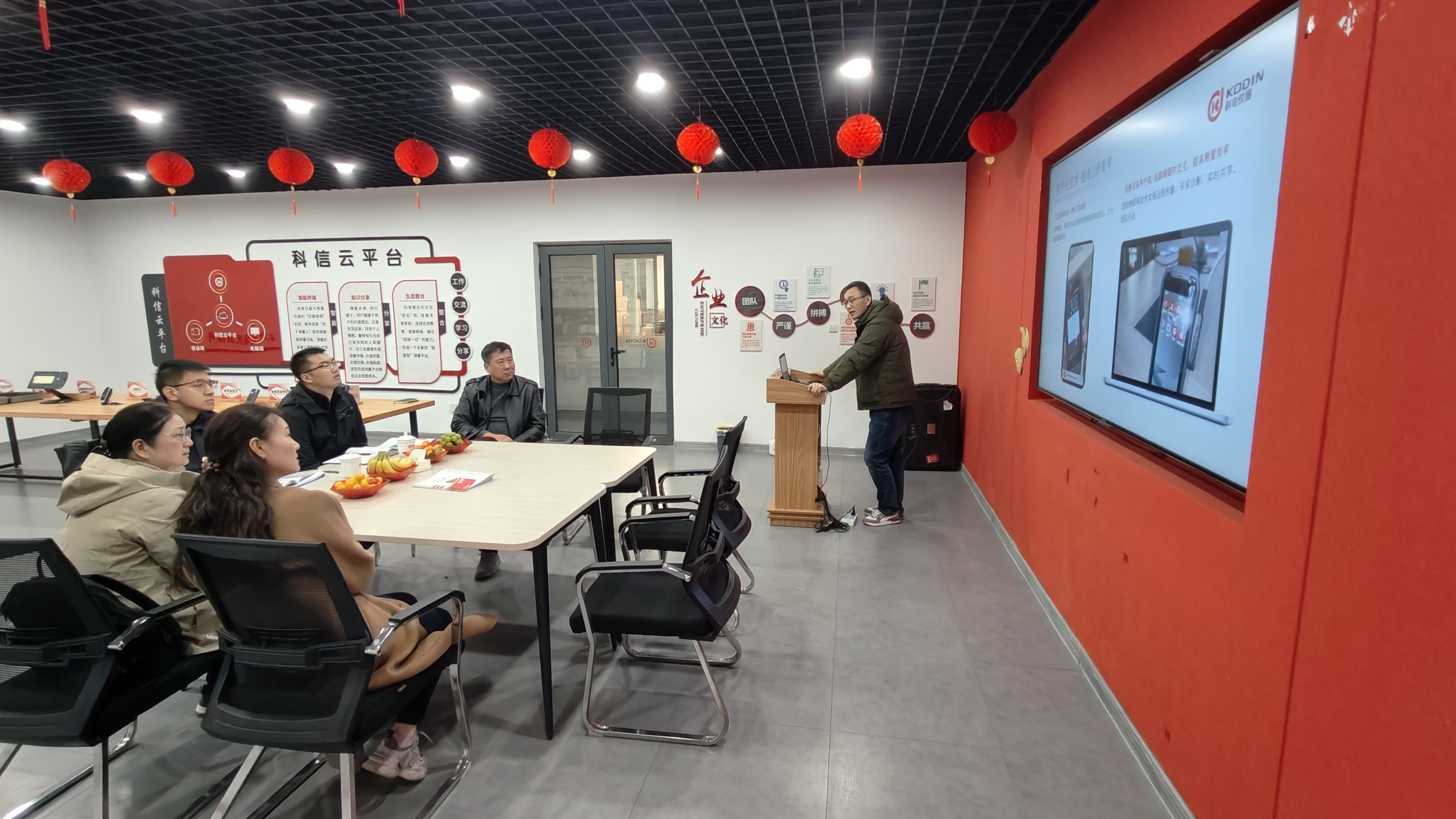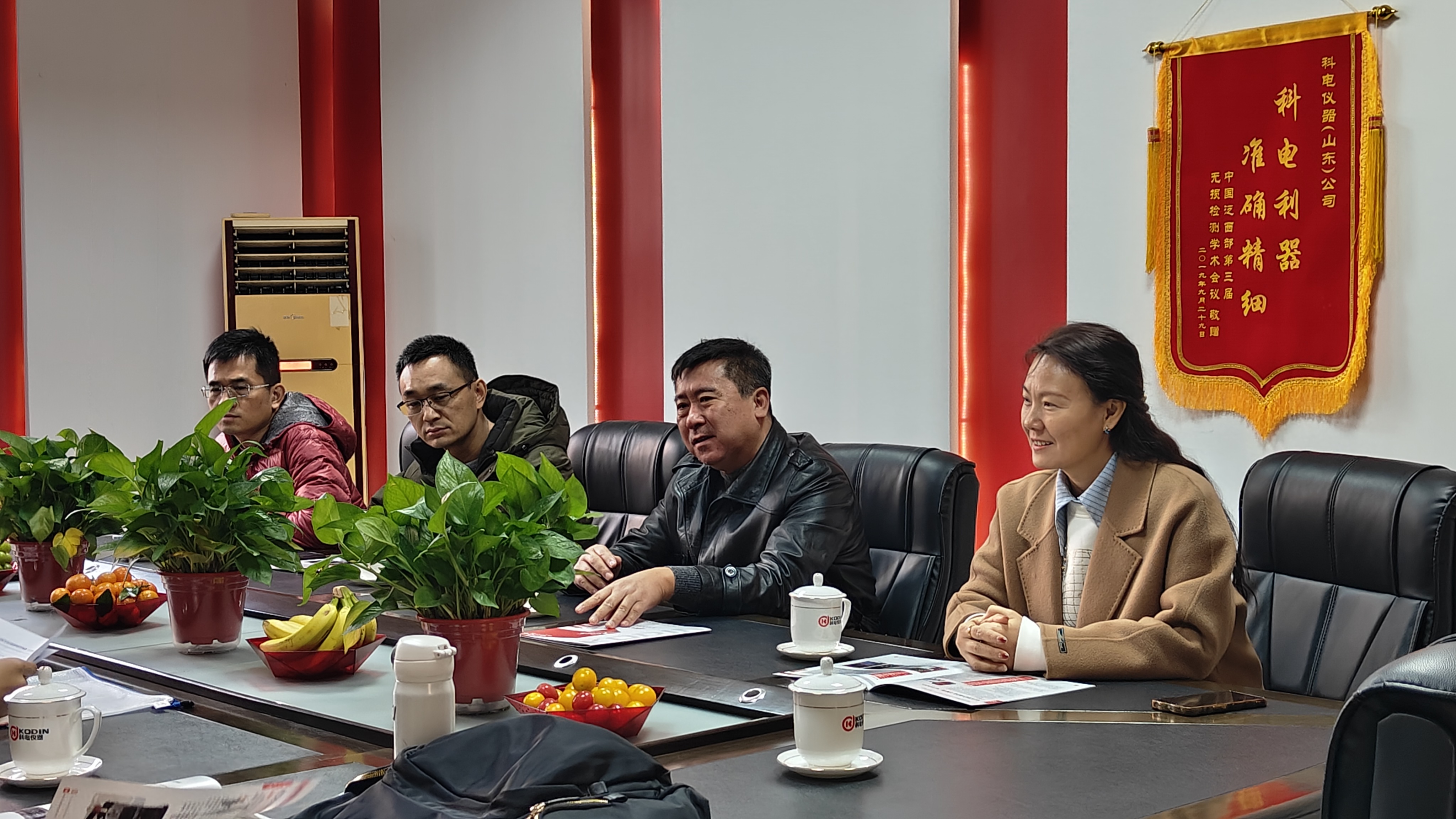 竇銳鋒董事長(zhǎng)出席接待并向?qū)<医M簡(jiǎn)要介紹科電儀器的核心業(yè)務(wù)(檢測(cè)儀器研發(fā)、生產(chǎn)及服務(wù))、
